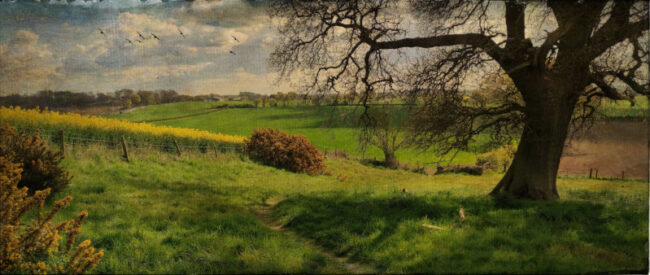Few sights capture the essence of rural spring quite like a field of blooming rapeseed. In Golden Bloom Beyond the Ancient Oak, the glowing yellow stretch of canola flowers is both a visual anchor and a celebration of seasonal renewal. This golden expanse, nestled between green meadows and bare-limbed trees, radiates warmth and abundance. It’s…